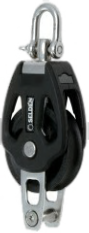 Stainless steel straps for added security. Convenient change from rotating to fixed shackle. Torsionally rigid cheeks in fiberglass-filled composite prevent jamming. Bronze bushing (PBB 80) Teflon bushing. Fiberglass reinforced pulley with Teflon bushing.