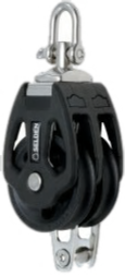 Stainless steel straps for added security. Convenient change from rotating to fixed shackle. Torsionally rigid cheeks in fiberglass-filled composite prevent jamming. Bronze bushing (PBB 80) Teflon bushing. Fiberglass reinforced pulley with Teflon bushing.