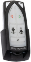 12/24V remote control kit to control bow thruster and windlass (with two channels). Side Power wireless remote controls are easy to use thanks to their optimal ergonomics, with resistance to water and UV rays. Additionally, they are programmed to automatically turn off after approximately 6 minutes of non-use to prevent accidental activation. Includes a snap mount and a quick-lock safety collar..